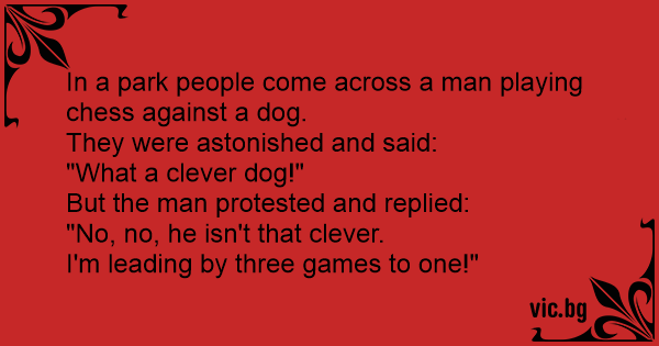 Pe terasa unei cafenele, se petrece de cîtăva vreme o scenă ciudată: un om şi un cîine stau faţă în faţă, avînd între ei o tablă de şah. Mirat, un tip întreabă: - Cum, cîinele dv. ştie cu adevărat...