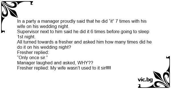 In a party a manager proudly said that he did “it” 7 times with his wife on his wedding night.