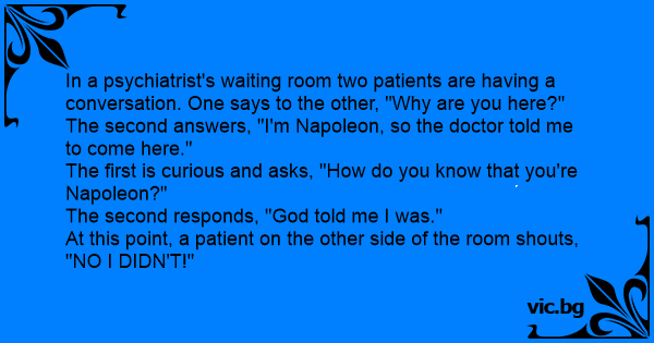 The second answers, "I'm Napoleon, so the doctor told me to come here."