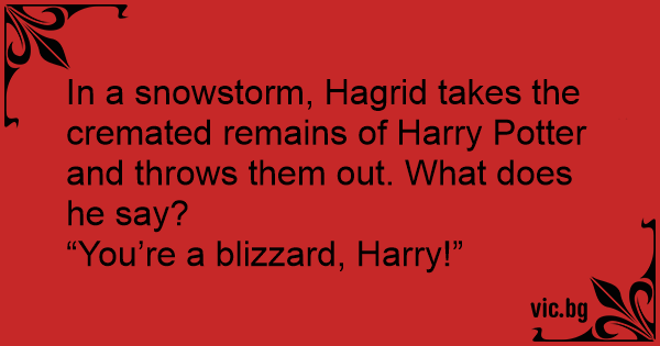 In a snowstorm, Hagrid takes the cremated remains of Harry Potter and throws them out. What does he say?