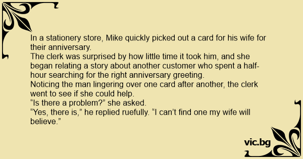 The clerk was surprised by how little time it took him, and she began relating a story about another customer who spent a half-hour searching for the right anniversary greeting.