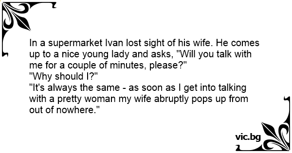 A man approached a very beautiful woman in a large supermarket and said, "I've lost my wife here in the supermarket. Can you talk to me for a couple of minutes?