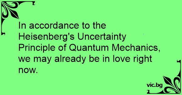 In accordance to the Heisenberg's Uncertainty Principle of Quantum Mechanics, we may already be in love right now.