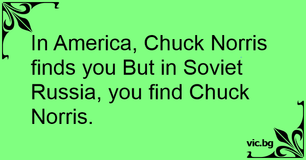 In America, Chuck Norris finds you But in Soviet Russia, you find Chuck Norris.