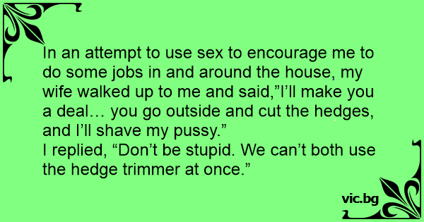 In an attempt to use sеx to encourage me to do some jobs in and around the house, my wife walked up to me and said,”I’ll make you a deal… you go outside and cut the hedges, and I’ll shave my рussy.”