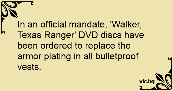In an official mandate, 'Walker, Texas Ranger' DVD discs have been ordered to replace the armor plating in all bulletproof vests.