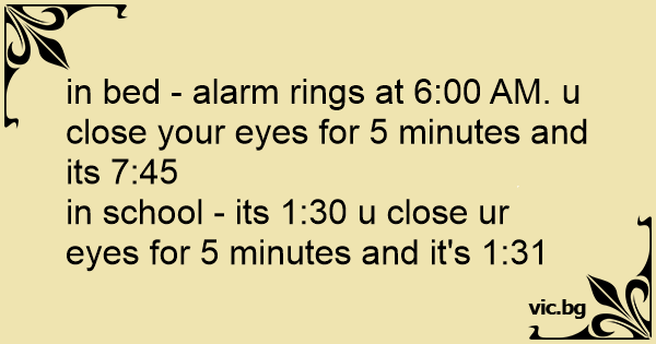 in school - its 1:30 u close ur eyes for 5 minutes and it's 1:31