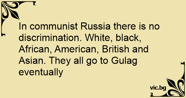 In communist Russia there is no discrimination. White, black, African, American, British and Asian. They all go to Gulag eventually