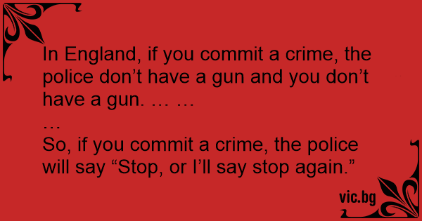 In England, if you commit a сriме, the police don’t have a gun and you don’t have a gun. … …
