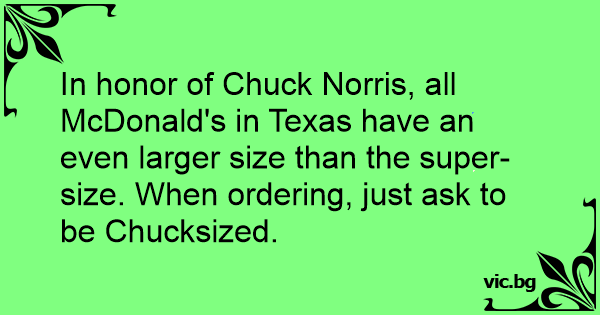 In honor of Chuck Norris, all McDonald's in Texas have an even larger size than the super-size. When ordering, just ask to be Chucksized.