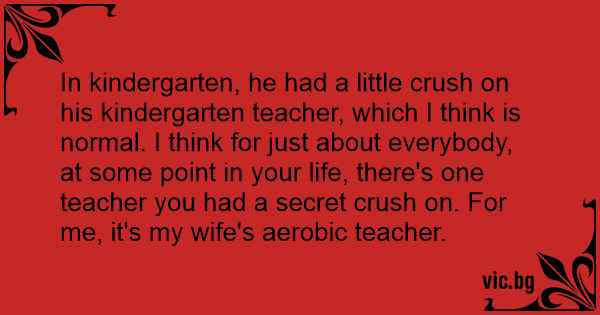In kindergarten, he had a little crush on his kindergarten teacher, which I think is normal. I think for just about everybody, at some point in your life, there's one teacher you had a secret crush on. For me, it's my wife's aerobic teacher.