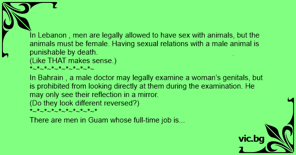 In Lebanon , men are legally allowed to have sеx with animals, but the animals must be female. Having sеxuаl relations with a male animal is punishable by death.