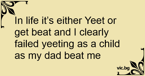 In life it’s either Yeet or get beat and I clearly failed yeeting as a child as my dad beat me