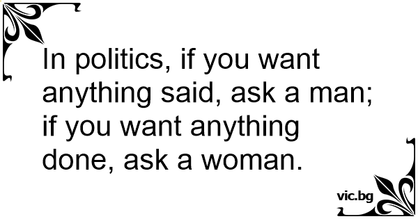In politics, if you want anything said, ask a man; if you want anything done, ask a woman.