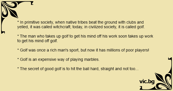 * In primitive society, when native tribes beat the ground with clubs and yelled, it was called witchcraft; today, in civilized society, it is called golf.