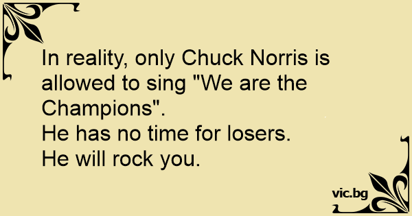 In reality, only Chuck Norris is allowed to sing "We are the Champions".