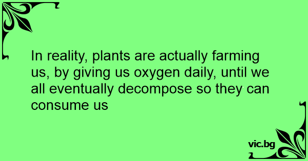 In reality, plants are actually farming us, by giving us oxygen daily, until we all eventually decompose so they can consume us