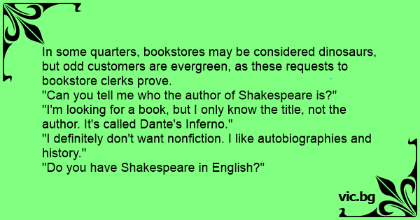 In some quarters, bookstores may be considered dinosaurs, but odd customers are evergreen, as these requests to bookstore clerks prove.