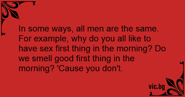In some ways, all men are the same. For example, why do you all like to have sеx first thing in the morning? Do we smell good first thing in the morning? 'Cause you don't.