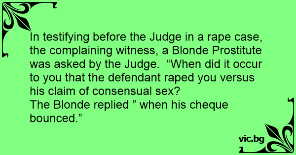 In testifying before the Judge in a rаре case, the complaining witness, a Blonde Рrоsтiтuте was asked by the Judge. “When did it occur to you that the defendant rареd you versus his claim of consensual sеx?