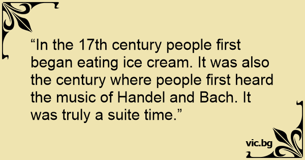 “In the 17th century people first began eating ice cream. It was also the century where people first heard the music of Handel and Bach. It was truly a suite time.”