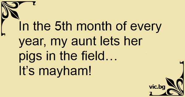 In the 5th month of every year, my aunt lets her pigs in the field…