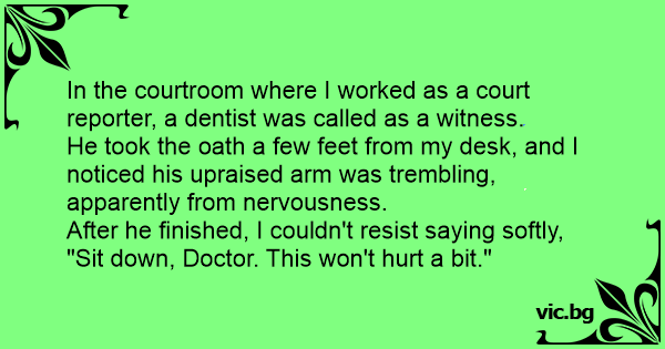 In the courtroom where I worked as a court reporter, a dentist was called as a witness.