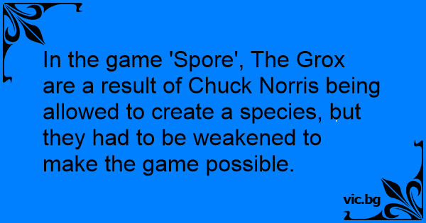 In the game 'Spore', The Grox are a result of Chuck Norris being allowed to create a species, but they had to be weakened to make the game possible.