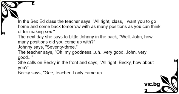The next day she says to Little Johnny in the back, "Well, John, how many positions did you come up with?"