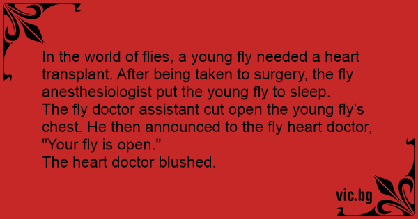 In the world of flies, a young fly needed a heart transplant. After being taken to surgery, the fly anesthesiologist put the young fly to sleep.