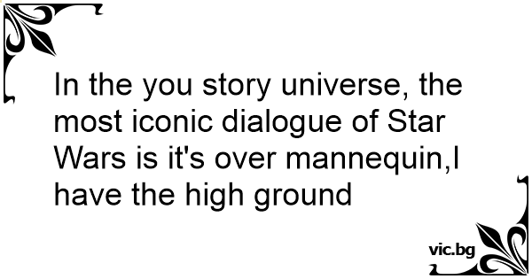 In the you story universe, the most iconic dialogue of Star Wars is it's over mannequin,I have the high ground