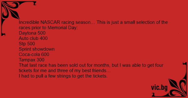 That last race has been sold out for months, but I was able to get four tickets for me and three of my best friends…