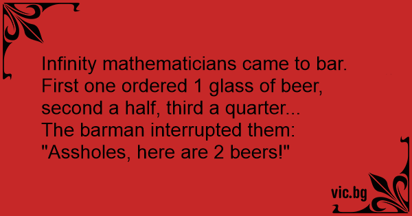 Безкраен брой математици влизат в един бар.