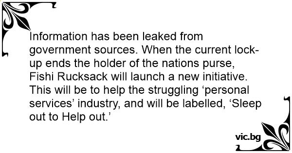 Information has been leaked from government sources. When the current lock-up ends the holder of the nations purse, Fishi Rucksack will launch a new initiative.