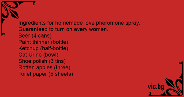 Ingredients for homemade love pheromone spray. Guaranteed to turn on every women.