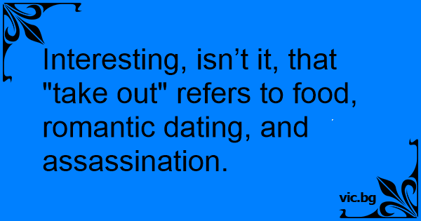Interesting, isn’t it, that "take out" refers to food, romantic dating, and assassination.