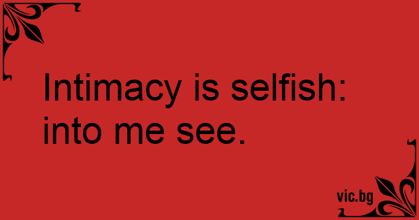 Intimacy is selfish: into me see.