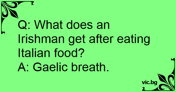 Q: What does an Irishman get after eating Italian food?