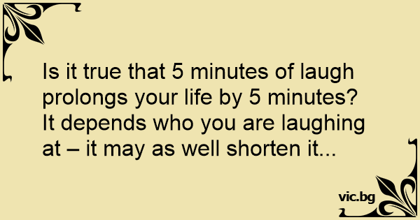 Is it true that 5 minutes of laugh prolongs your life by 5 minutes?<br />It depends who you are laughing at – it may as well shorten it...