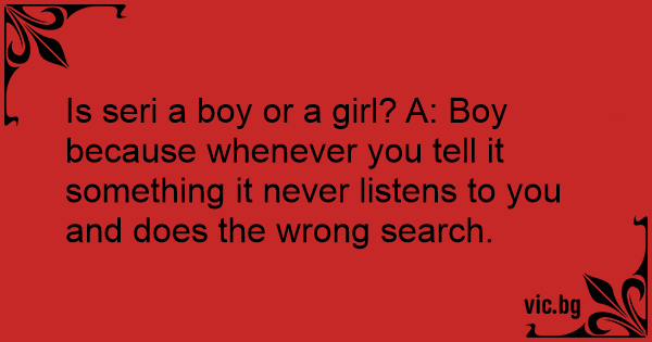 Is seri a boy or a girl? A: Boy because whenever you tell it something it never listens to you and does the wrong search.