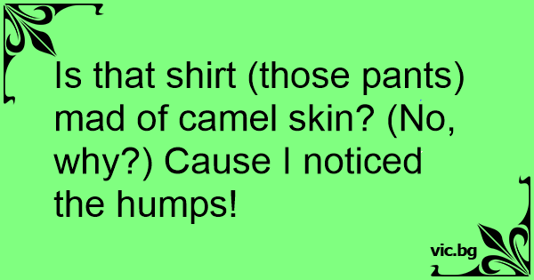 Is that shirt (those pants) mad of camel skin? (No, why?) Cause I noticed the humps!