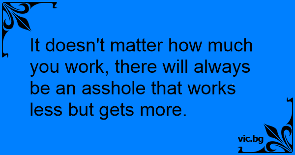 It doesn't matter how much you work, there will always be an аsshоlе that works less but gets more.