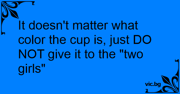 It doesn't matter what color the cup is, just DO NOT give it to the "two girls"