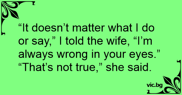 “It doesn’t matter what I do or say,” I told the wife, “I’m always wrong in your eyes.”