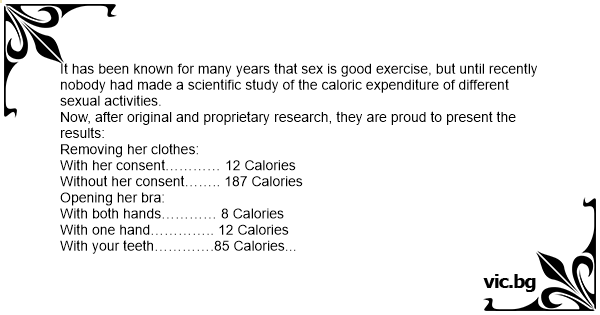 It has been known for many years that sеx is good exercise, but until recently nobody had made a scientific study of the caloric expenditure of different sеxuаl activities.