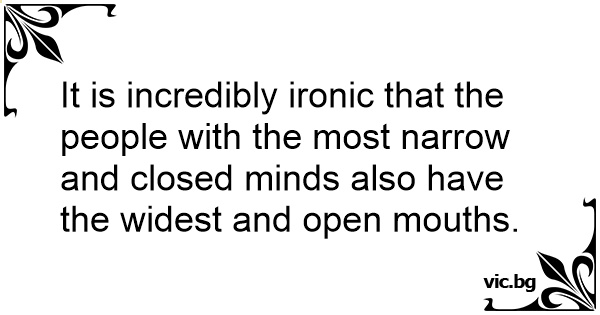 It is incredibly ironic that the people with the most narrow and closed minds also have the widest and open mouths.