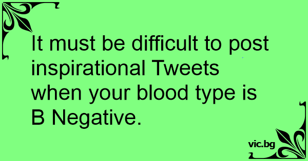It must be difficult to post inspirational Tweets when your blood type is B Negative.