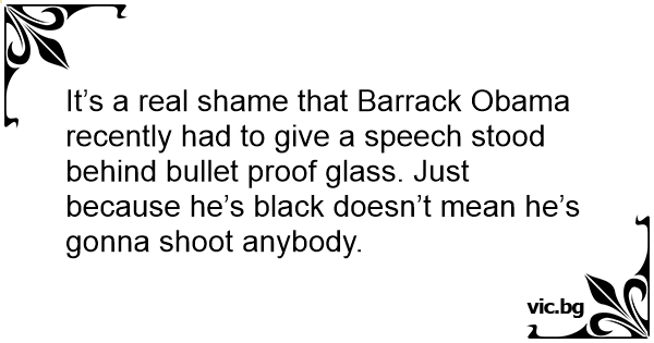 It’s a real shame that Barrack Obama recently had to give a speech stood behind bullet proof glass. Just because he’s black doesn’t mean he’s gonna shoot anybody.