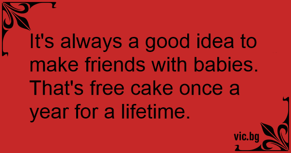 It's always a good idea to make friends with babies. That's free cake once a year for a lifetime.