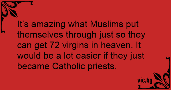 It’s amazing what Muslims put themselves through just so they can get 72 virgins in heaven. It would be a lot easier if they just became Catholic priests.